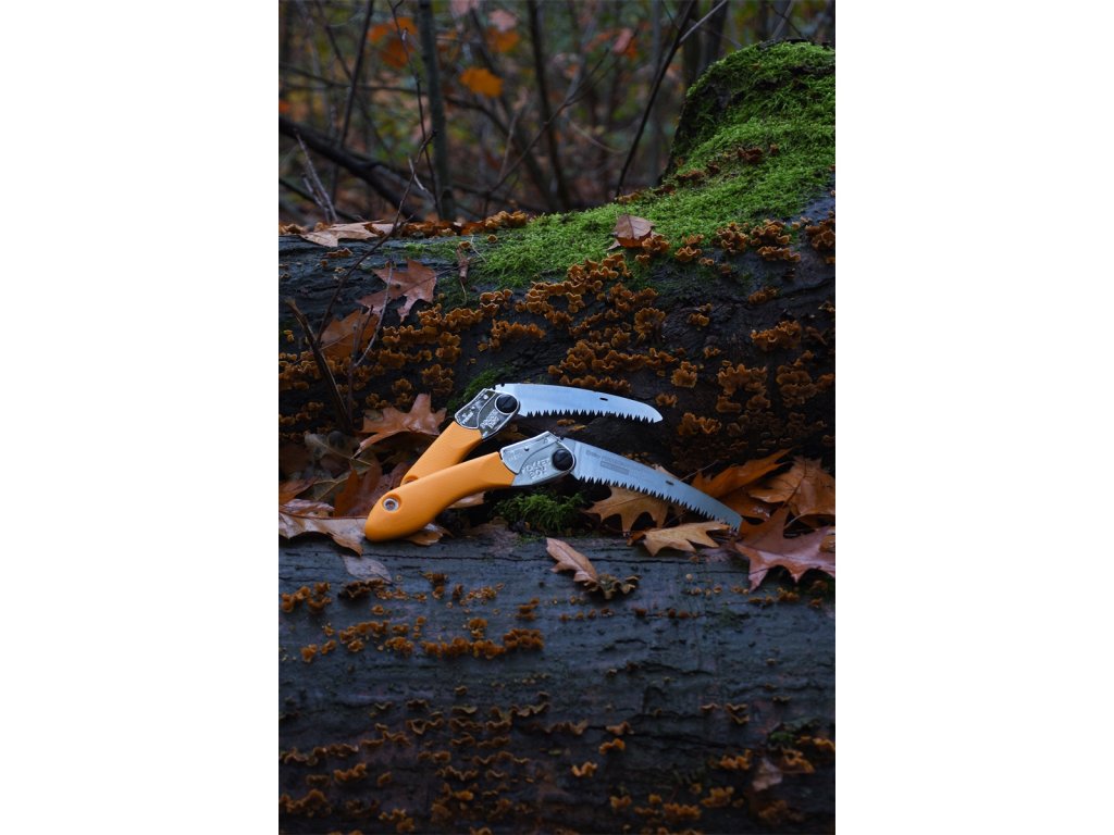 Pilu lze jednoduše složit a rozložit pomocí aretačního tlačítka, které zároveň dovoluje uživateli nastavit 2 různé polohy řezání. Gumová rukojeť pak tlumí vibrace a zajišťuje bezpečný a pohodlný úchop. Pro větší praktičnost je v rukojeti přítomen otvor, který umožňuje k pile připevnit karabinu nebo lano. Při plném složení se ostří pily bezpečně schová do rukojeti. Nemusíte se tak bát, že byste se zranili nebo pilku otupily.