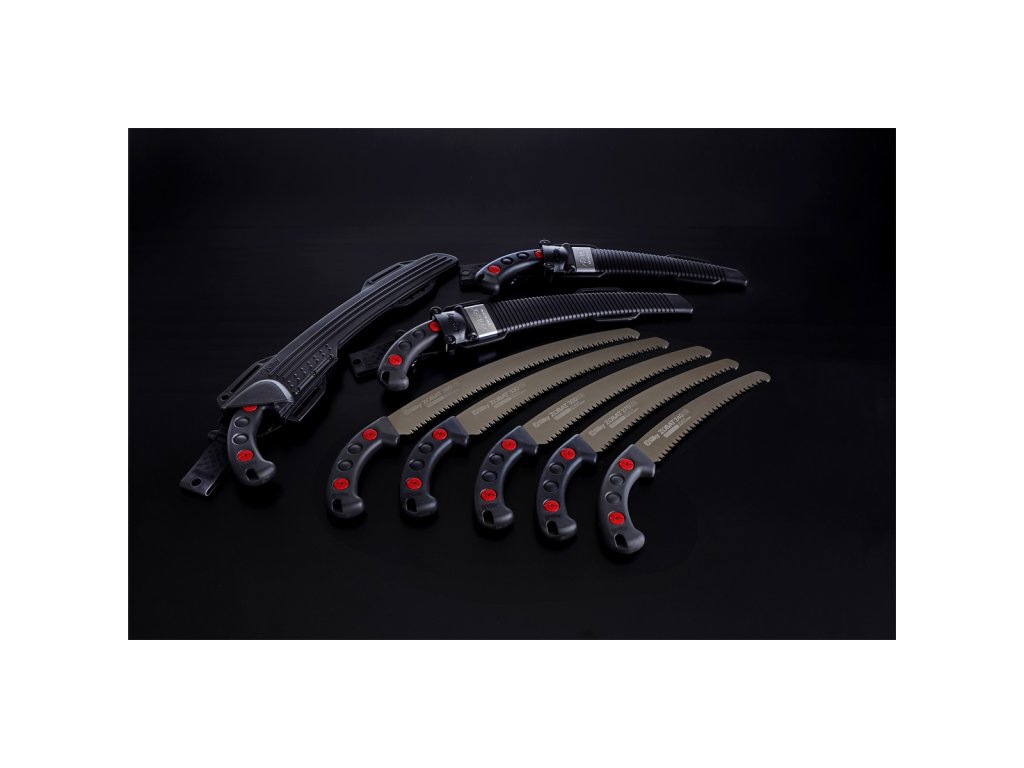 Tento konkrétní model pily disponuje silným zahnutým pilovým listem o délce 330 mm, který je osazen řadou ostrých, extrémně agresivních zubů, s celkovou hustotou 5,5 zubů na 3 cm. Tato koncepce je primárně určena pro rychlé řezaní měkkého, čerstvého dřeva, jako je lípa, topol nebo vrba. Patentovaná technologie MIRAI-ME zaručuje, že jsou zuby pilového listu přesně vybroušeny, přičemž každý má 3 samostatné řezné plochy s ostrými hranami a extrémně hladkým povrchem. Pro optimální odvod pilin je pak jeden z mnoha zubů (v závislosti na modelu pily) vybroušen směrem ven.