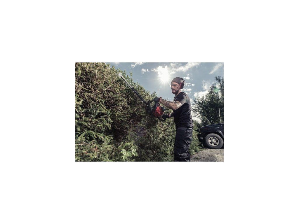Benzínové nůžky na živý plot solo® by AL-KO 163-55 s vysokým točivým momentem jsou vaším agregátem pro efektivní a přesné stříhání velkých a vysokých živých plotů, keřů a keřů. Se svou nádrží o objemu 440 ml jej lze použít kdekoli - pro velký akční rádius a nezávislost. Díky 55 cm ocelové bezpečnostní čepeli dosáhnete dokonalého střihu a uděláte rychlý pokrok. Protiskluzové gumové rukojeti, snadno dostupné ovládací prvky a dobře vyvážená hmotnost podporují práci bez únavy. Hlavní rukojeť, kterou lze nastavit do 3 poloh, umožňuje optimální polohu úchopu v každé pracovní poloze. Integrovaný antivibrační systém usnadňuje ovládání výkonu benzínových nůžek na živý plot - pro maximální ochranu rukou, paží a ramen. Bezpečnostní faktor je velmi důležitý: Na jedné straně máte s benzinovými nůžkami na živý plot velkou volnost pohybu bez rizika přeříznutí kabelu. Na druhou stranu našroubovaná ochrana proti proříznutí chrání před rizikem zranění. Toulec, který je součástí dodávky, slouží jako přepravní kufřík pro bezpečné, přístrojově nenáročné skladování a přepravu nůžek na živý plot. Specifikace benzínových plotostřihů 163-55 Nůžky na živý plot solo® by AL-KO 163-55 jsou vybaveny velmi kvalitní lištou na nože s robustním hliníkovým profilem. Na něm sedí laserem řezaný, diamantem broušený bezpečnostní nůž z kalené speciální oceli s délkou řezu 55 cm. Výkonný, protiběžný a velmi odolný nůž stříhá váš živý plot velmi efektivně a přesně. Aby se předešlo riziku poranění ostrým, výkonným nožem, má zařízení našroubovanou ochranu proti proříznutí. Pohodlná, protiskluzová pryžová rukojeť nůžek na živý plot 163-55 se svými 3 nastavitelnými polohami uchopení zajišťuje přesné vedení nože v jakékoli poloze - ideální pro vysoké a široké živé ploty. Spolu s přídavnou gumovou rukojetí a dobře vyváženou hmotností je manipulace s benzínovými plotostřihy snadná a šetrná k tělu. Dvoutaktní motor o výkonu 0,68 kW je napájen z velké 440ml nádrže, jejíž hladina paliva je dobře čitelná. Bez ohledu na zásuvky, délky kabelů nebo výdrže baterie se můžete velmi volně pohybovat a mít dlouhé doby chodu mezi intervaly doplňování paliva. Sofistikovaný antivibrační systém snižuje námahu obsluhy při práci a zajišťuje pohodlnou práci.