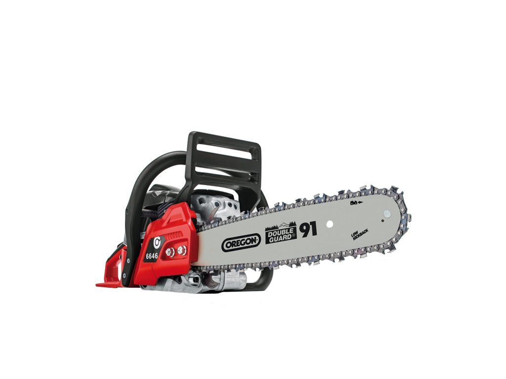 Odolná originální lišta Oregon umožňuje pracovat rychle s řeznou délkou 38 cm a vyniká dobrou ovladatelností. Postranní napínání řetězu upevněné pomocí převlečných matic usnadňuje údržbu a urychluje ideální nastavení řetězové pily. Elektronický startovací systém pomocí tlačítka a za pomocí primeru zajišťují rychlý a bezpečný start. Extra tlumení vibrací společně s ergonomicky optimalizovaným držadlem zaručují, že vibrace z hnacího ústrojí a řezací lišty nejsou přenášeny na zápěstí uživatele a lze tak dosáhnout přesných výsledku řezání. Dalším plusem je velkoobjemový vzduchový filtr a extrémně odolné pouzdro pro dlouhou životnost. Mezi další výhody patří řízení toku oleje a předehřívání vzduchu v zimě.